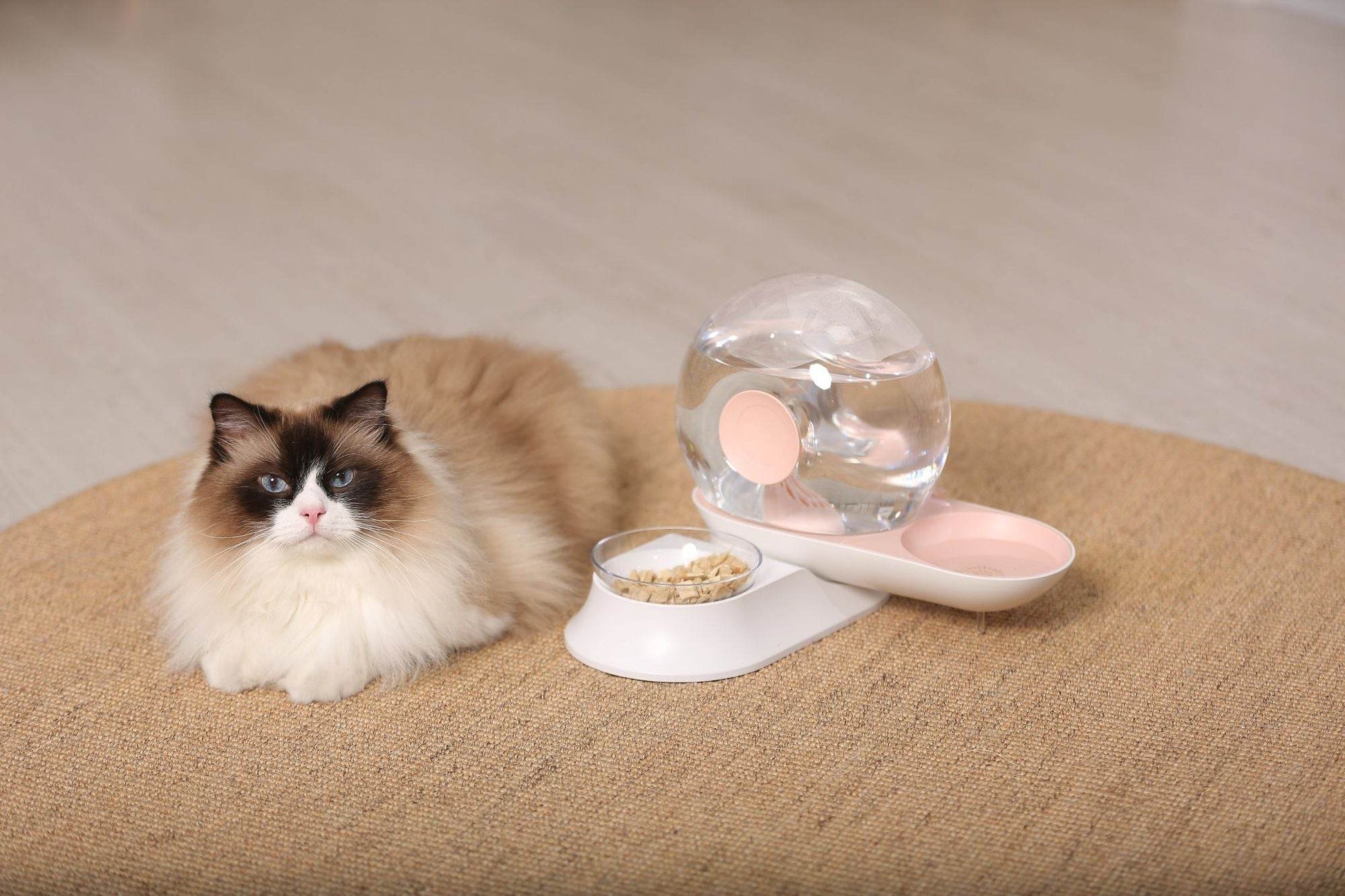 The integrated raised food bowl transforms this from a simple water dispenser into a complete dining experience: